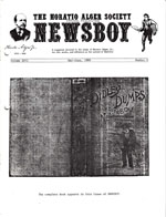 A publication of the Horatio Alger Society, Newsboy is issued six times a year and contains many excellent scholarly articles about Horatio Alger and his books, new finds, and unusual insights into other authors and their books.